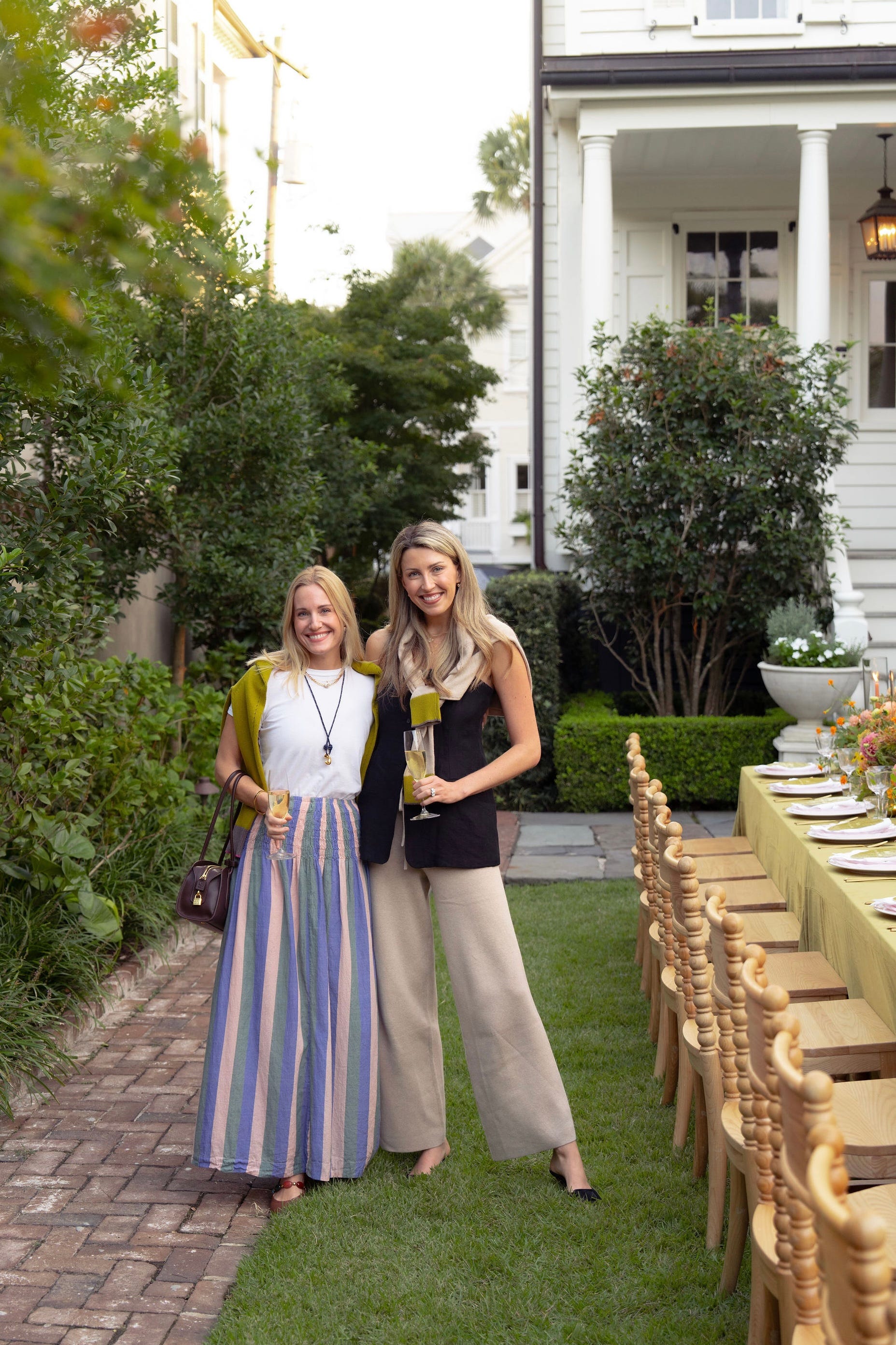 - these silky tassel pants and this blazer top and these low pumps.