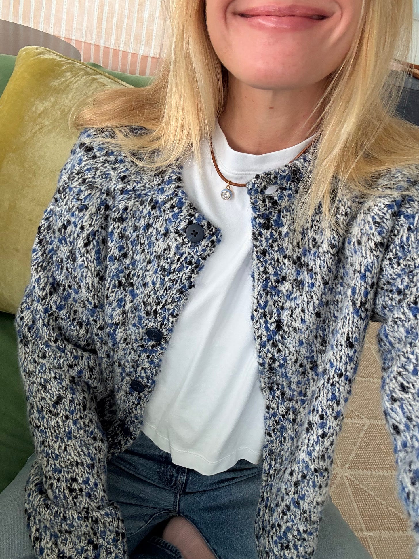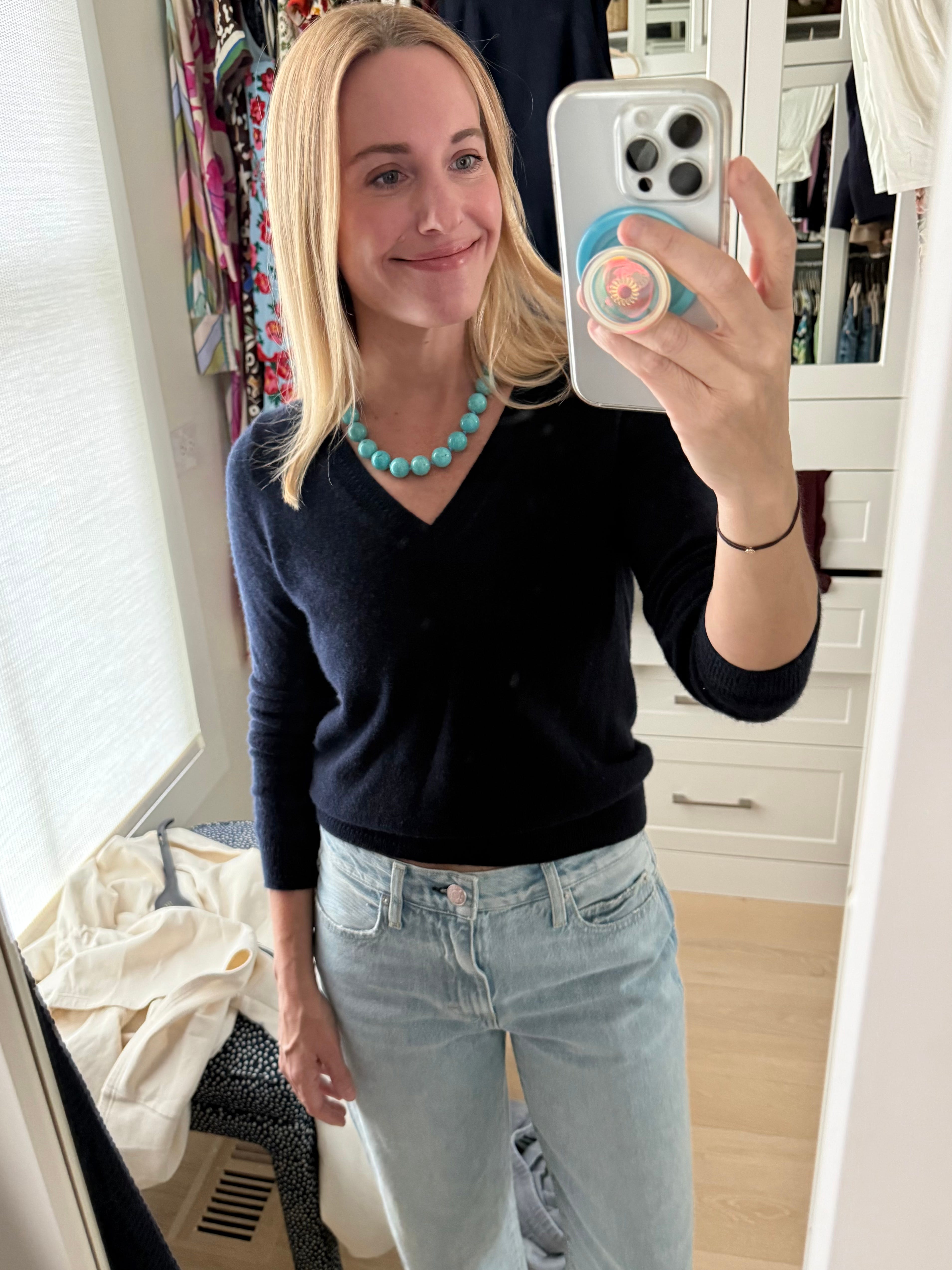 And this sweater – while I don’t know which colors y’all snatched up, I know it’ll be a workhorse in your closets b/c a thin crew cashmere sweater is one of the most versatile things you can own.