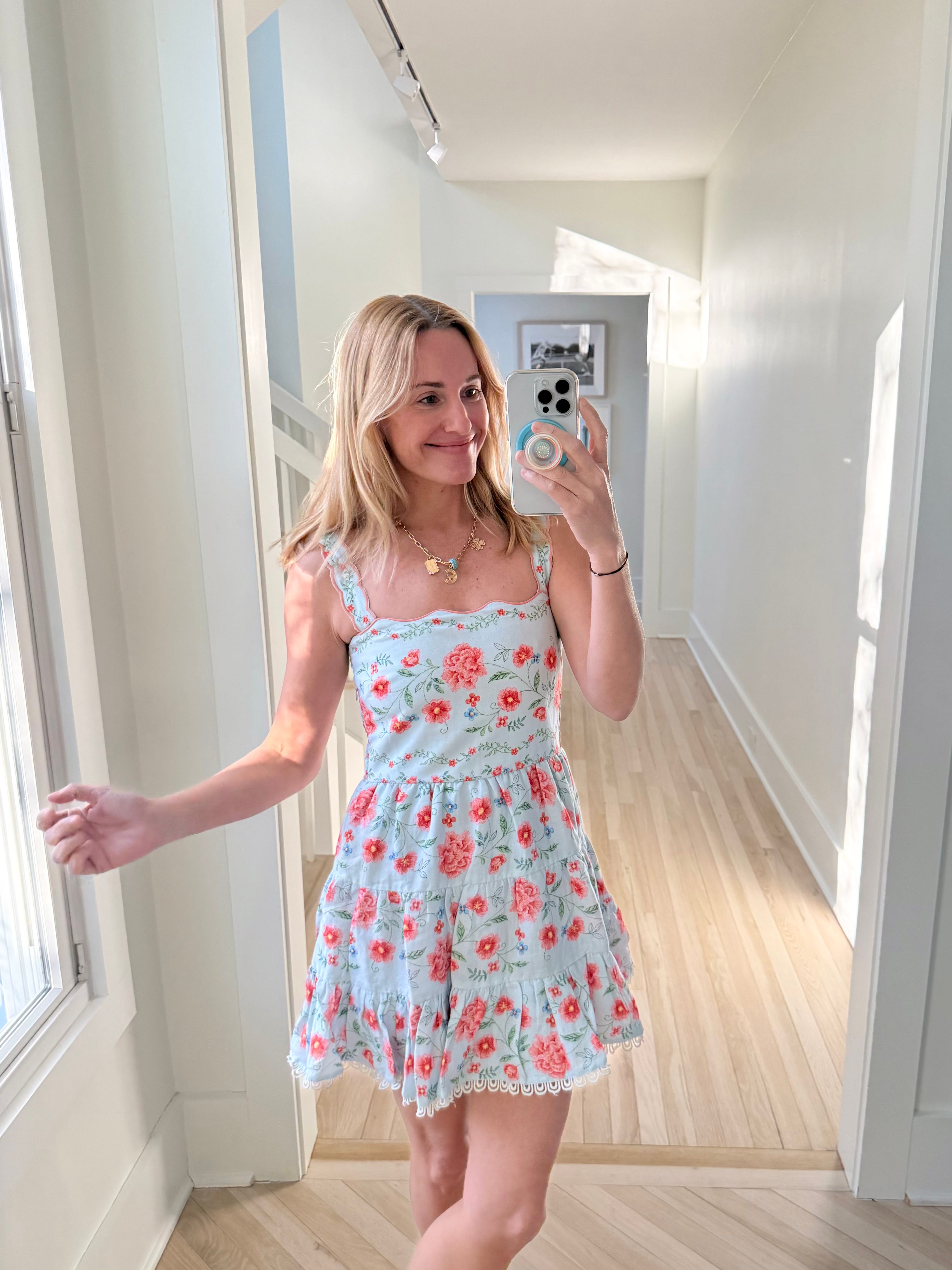 This was one of the aforementioned try-ons, as it’s not quite warm enough here to wear it, but I mean look at how cute this floral tunic dress is! I love the print. I will say it runs large, I immediately washed and dried it after this photo to shrink it.