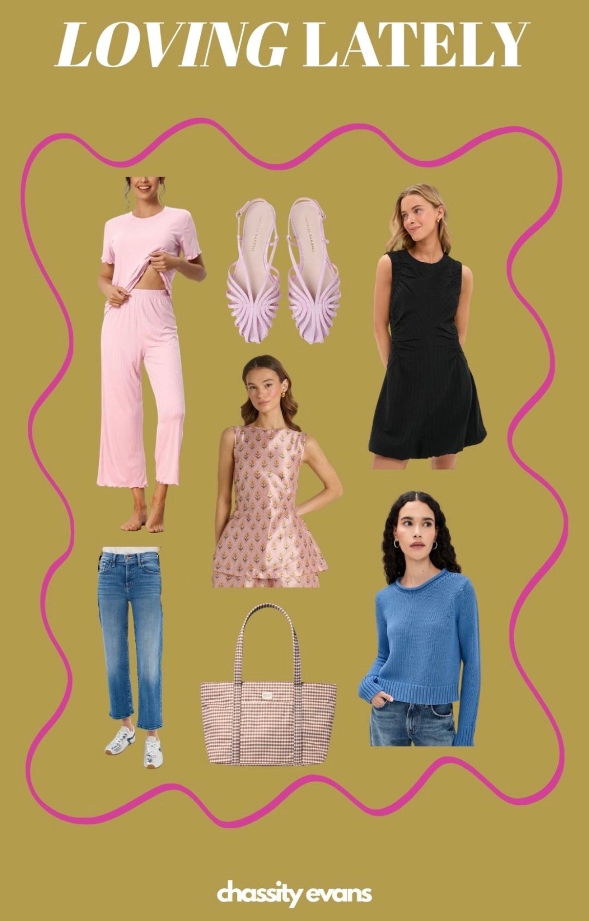 DYING over the pink gingham top and matching pants. I have those pants in the brown gingham colorway and can tell you they’re a super cute fit and are really comfy!