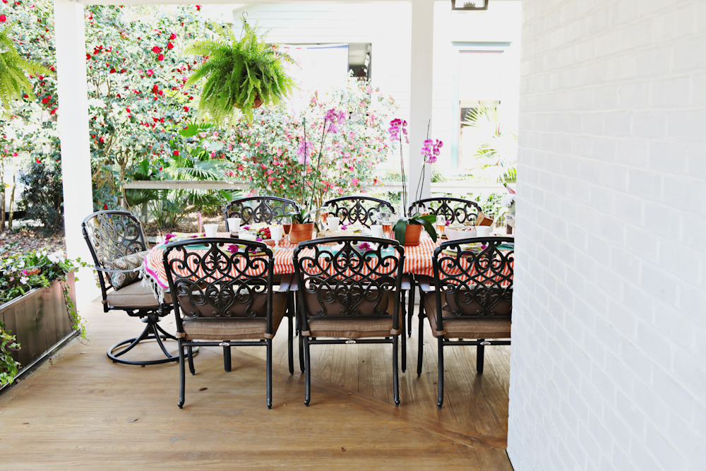 What a gorgeous luncheon. I love the table setting. The stripe tablecloth is fantastic. I’m so in love with your porch. Looks fantastic.