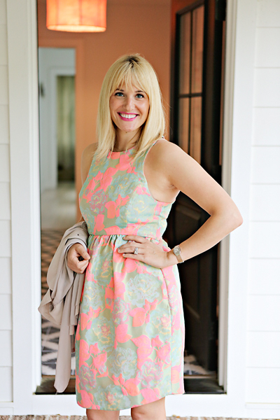 This Suno dress that I’m wearing is freaking amazing. Ah-freaking-mazing. I have been eyeing this exact acid rose brocade from Suno’s spring collection, but hadn’t seen this dress anywhere. Van Jean had it!