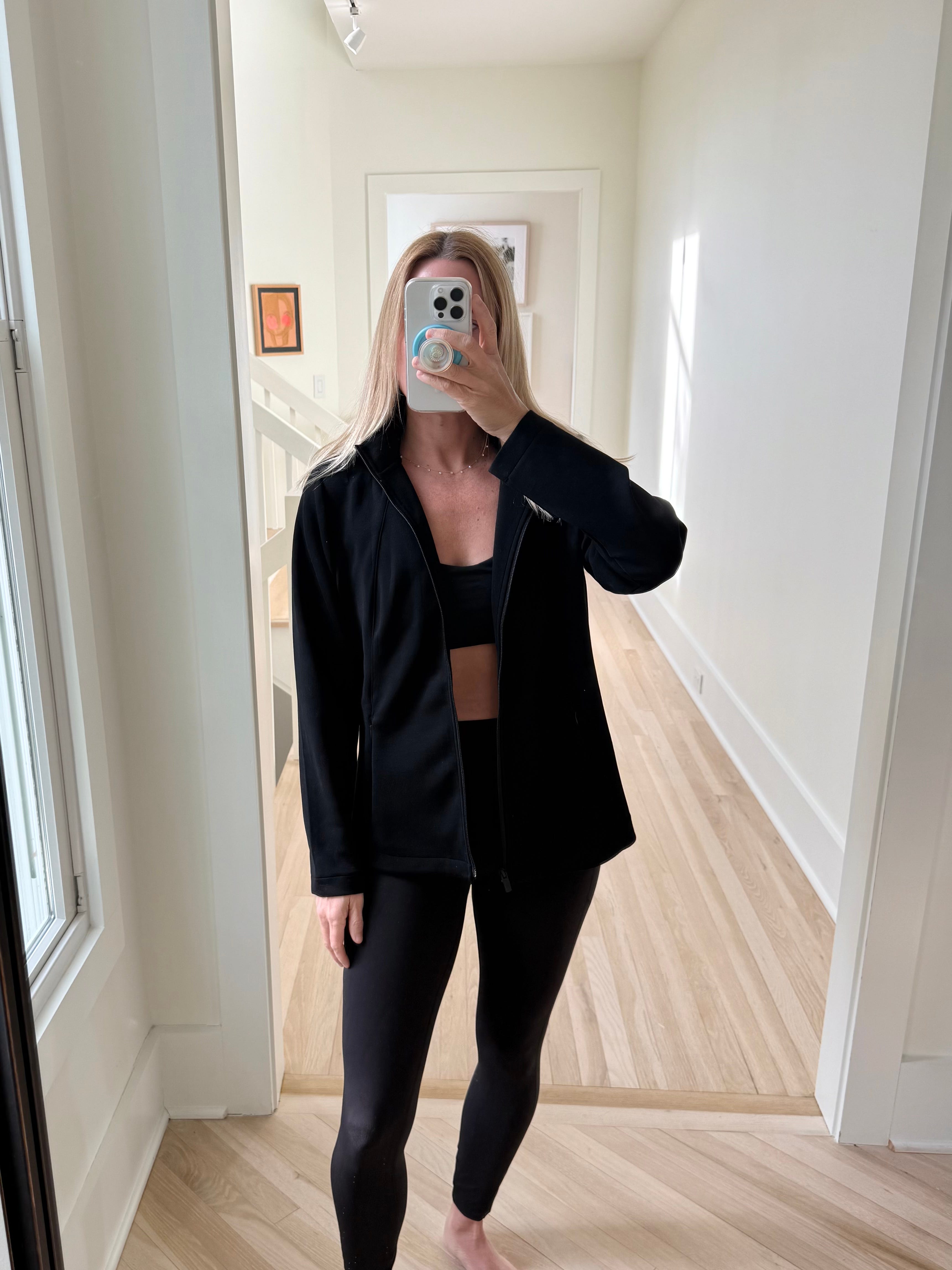 Okay a workout outfit, these black leggings are fabulous. And it may not seem special but this black zip up jacket is the perfect layer for this time of year. It’s SO soft! I love it.
