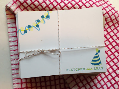 I know I need to write them. And I want to. I just keep putting it off. But just look at how darn pretty they are?? My friend Liza of Bon Vivant designed them (they coordinate with the party invitations we sent). I totally need to get them out. May the force be with me.